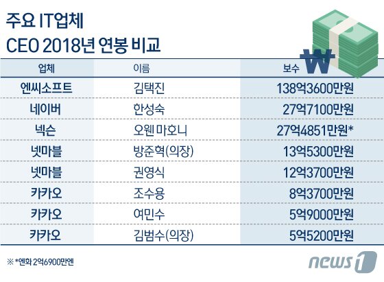 Ceo 연봉 엔씨소프트 이희상 부사장 32억 게임업계 톱